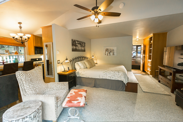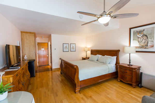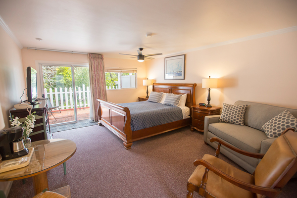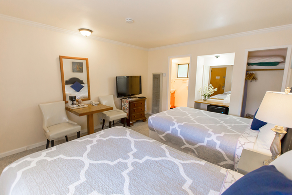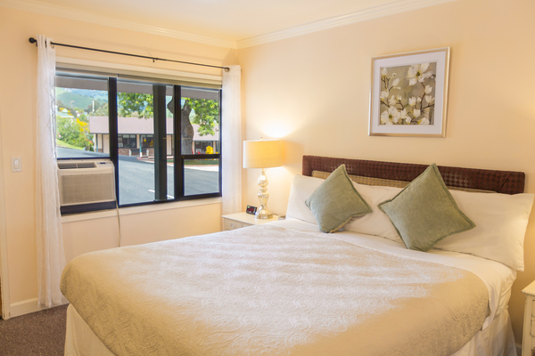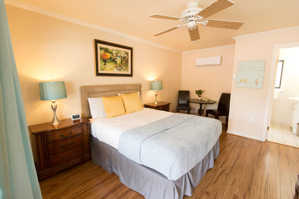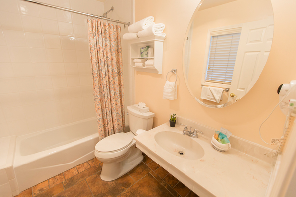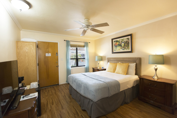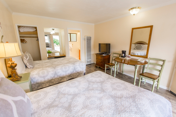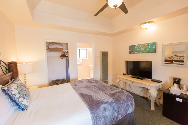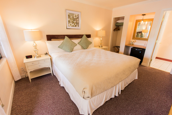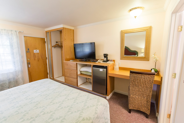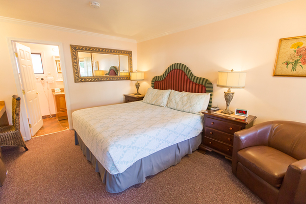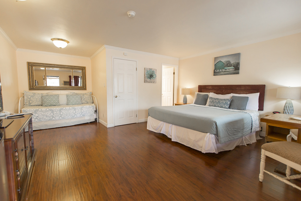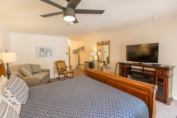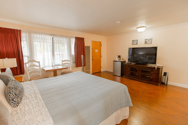Room with 1 King Bed located in back of property, can be adjoined to a room with two double beds to accommodate parties of up to 5 people. Please call the Peach Tree Inn to make these accommodations, -Complimentary Continental Breakfast, compact refrigerator, Wi-Fi, Direct TV, Free HBO, flat screen TV, Parking directly in front of rooms -In room coffee-maker, iron, ironing board & hair dryer,. No two rooms are alike.